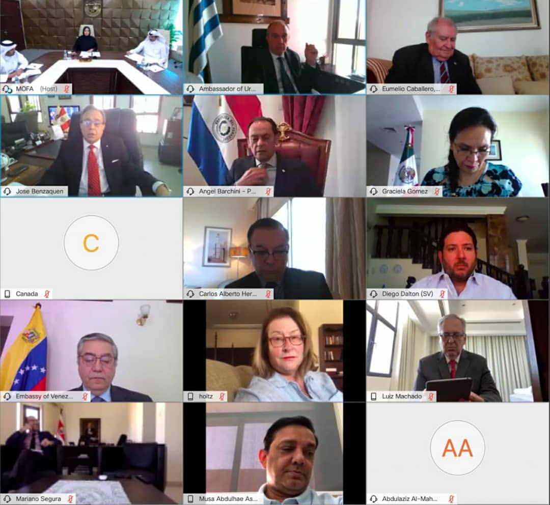 Ambassador Hernandez held a videoconference with Her Excellency Mrs. Lulwa Bint Rashid bin Muhammad Al Khater, Assistant Foreign Minister and Spokesman of the Supreme Committee for Crisis Management, together with His Excellencies Ambassadors Essa bin Mohammad Essa AlMannai and Khalid Rashid Al Mansoori, and the rest of the Ambassadors of the Americas accredited to the State of Qatar, in order to be informed of the possible scenarios regarding the 4 stages of the gradual lifting of coronavirus restrictions, the efforts in fighting COVID-19, and answer inquiries and questions in this regard.