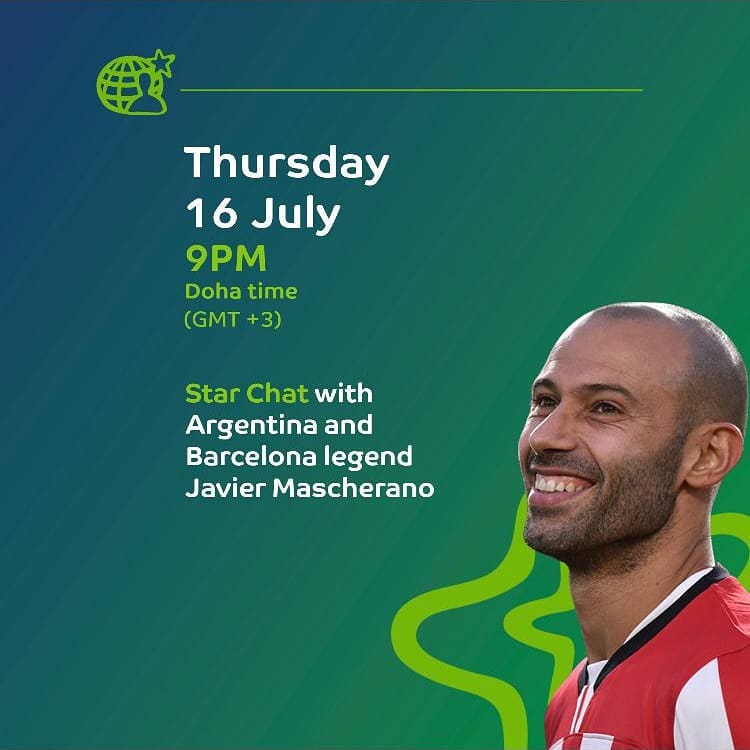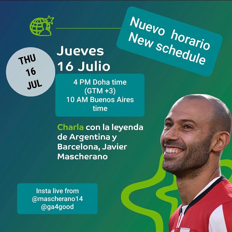 Argentine superstar Javier Mascherano will be having an Instalive talk this Thursday 16th with GA4Good at 9 pm (Doha...